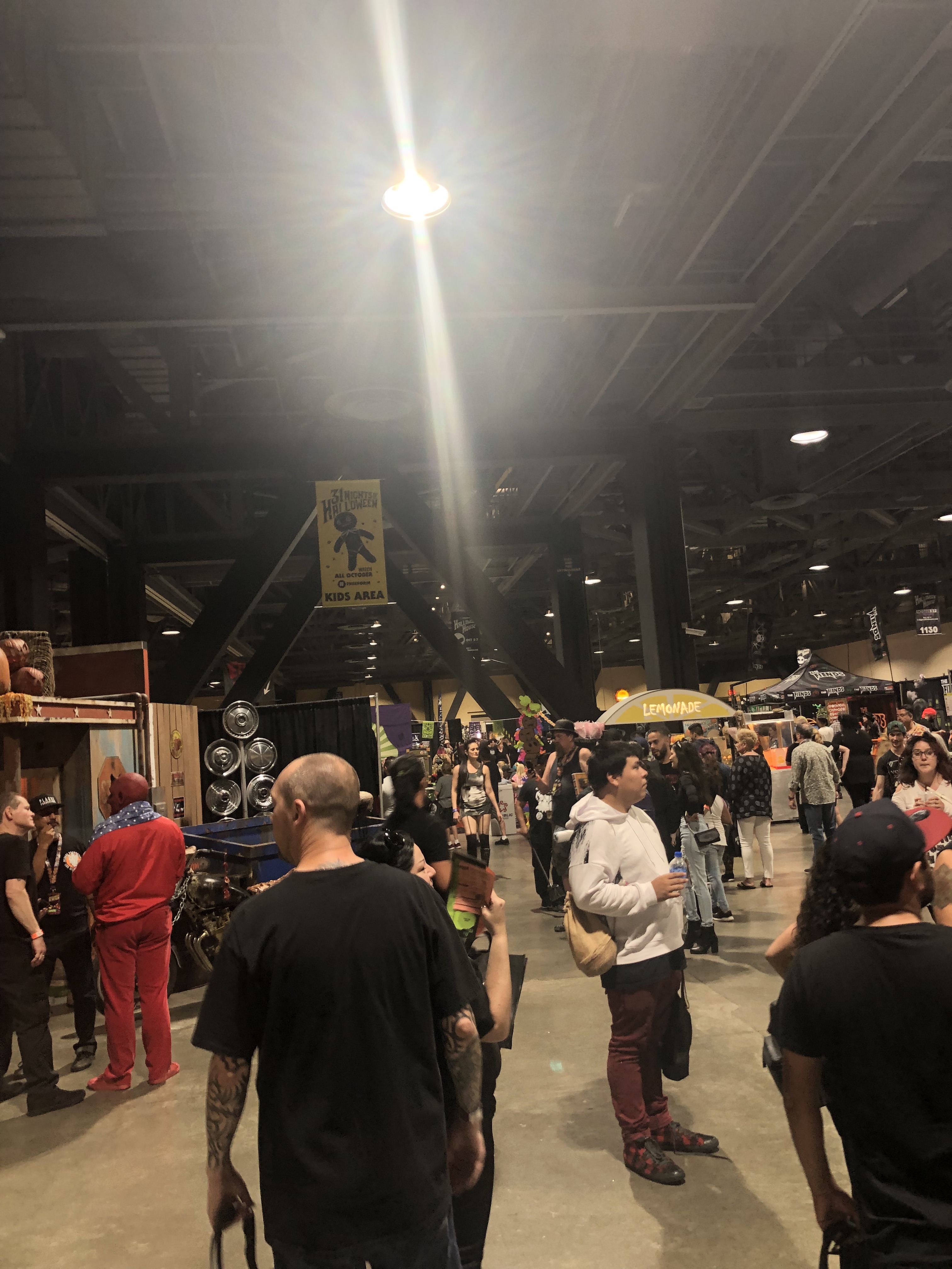 My original intent was to go to the Knott’s Scary Farm panel, but I ended up missing it because I didn’t realize how much else there was to do there. The convention is separated into a few different parts. There is the Grand Ballroom, where all the biggest panels happen, and there are several smaller ballrooms where different events are happening at all times of the day. Then there is the main exhibition area will hundreds of vendors offering everything from masks to VR. Lastly, there is the biggest and in my opinion the best room in the convention called Hall of Screams. This room is entirely dark and eerie and resembles what you would see at Halloween Horror Nights and even has six mini mazes for guests to go through.